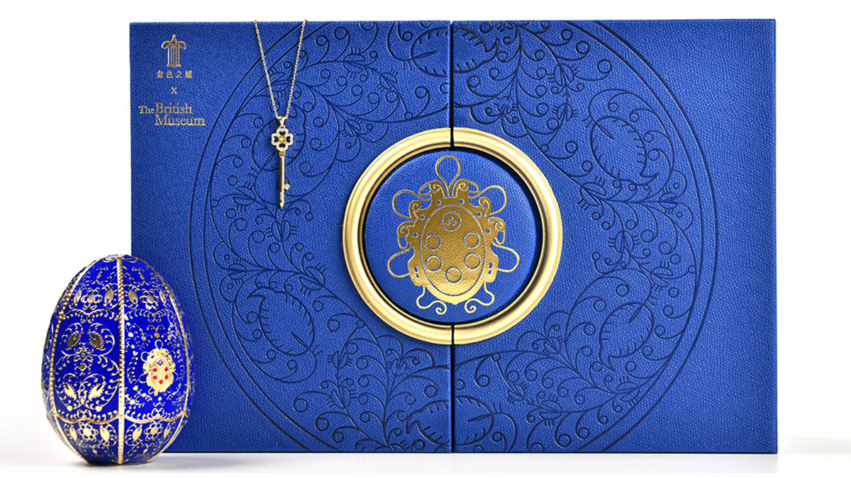 《馬約里卡金喜彩蛋套裝》的設(shè)計源自大英博物館藏品一文藝復(fù)興時期馬約里卡陶盤,將文藝復(fù)興締造者美第奇家族的族徽作為整個設(shè)計的設(shè)計重點,形成統(tǒng)一的設(shè)計語言,將所有產(chǎn)品融為整體。