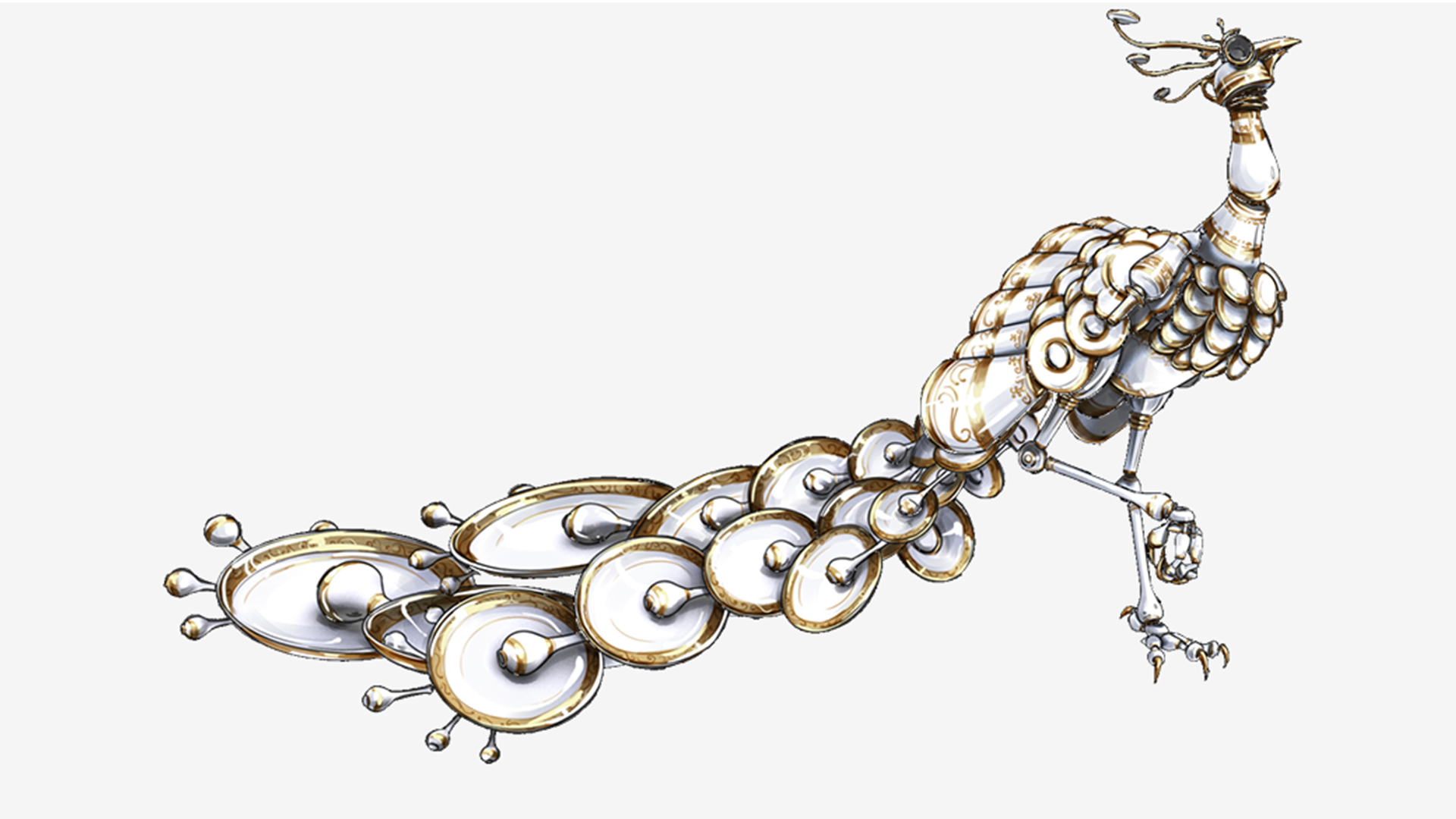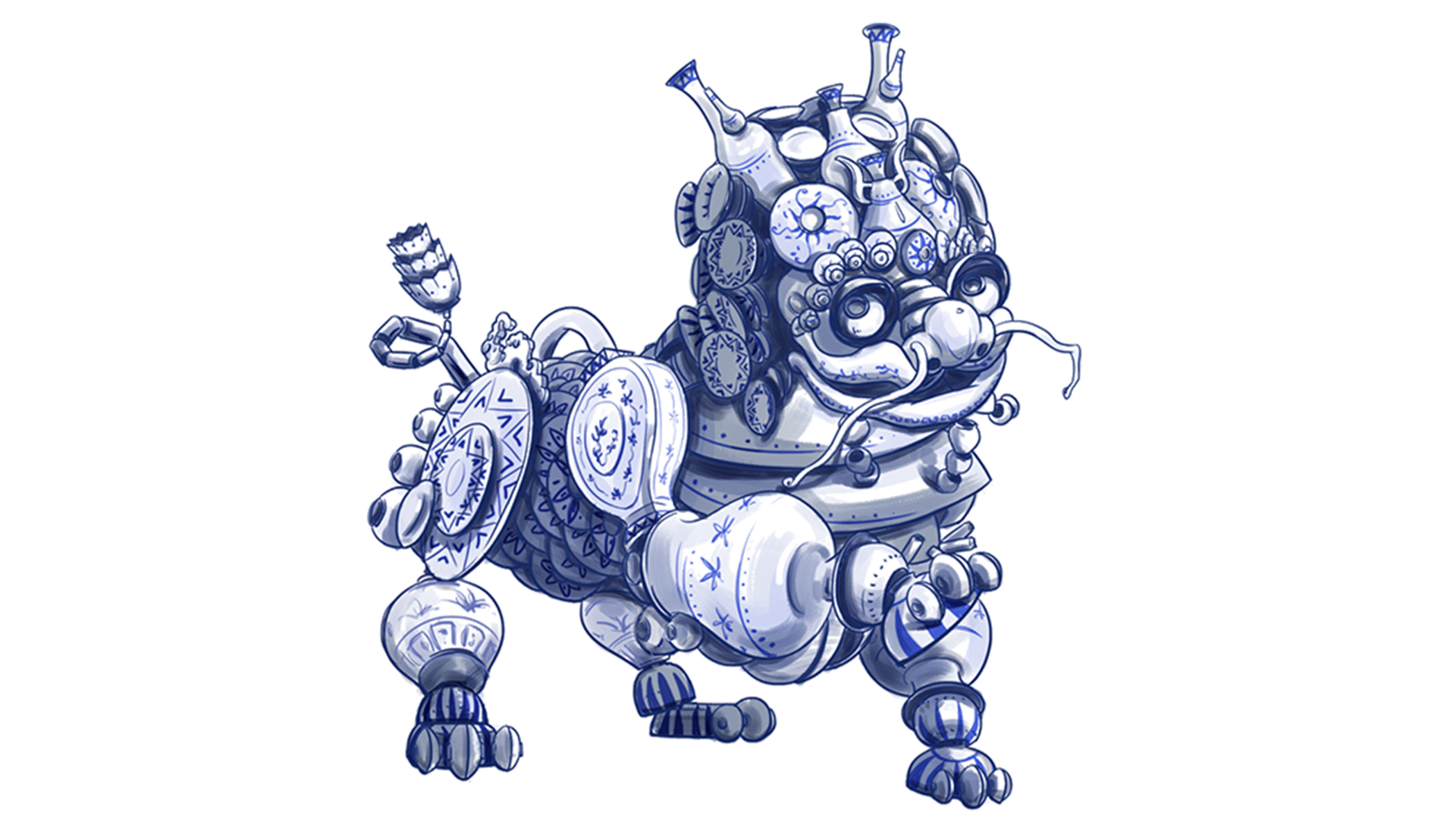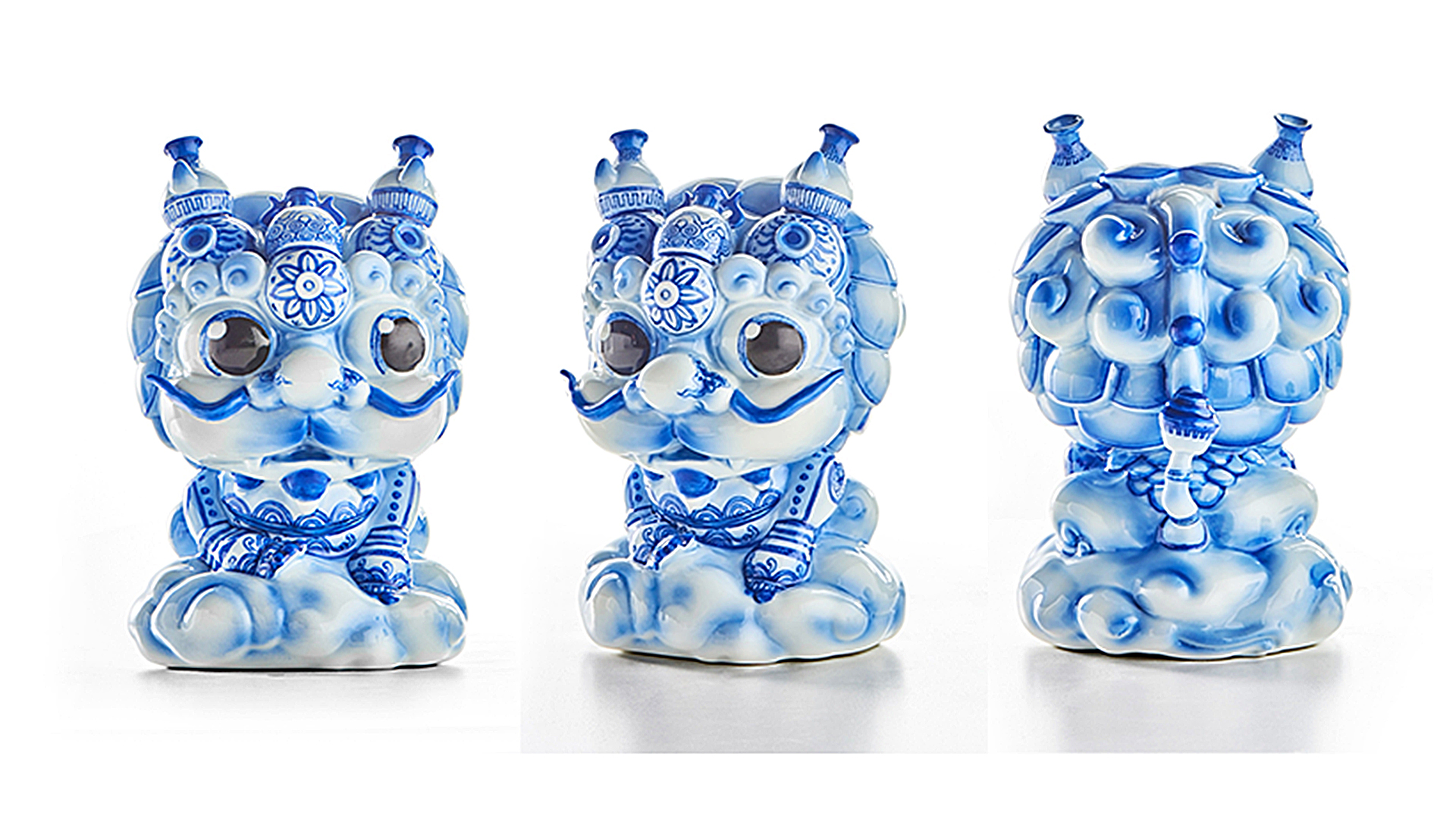 LONG是一只由著名御窯的瓷器構(gòu)成的瑞獸。LONG在瓷世界中掌管“瓷”之燒制,他的設(shè)計原型是“龍,組合他的瓷器原型主要選用清代“御窯”的代表作,特別是以造型技術(shù)見長的“雙聯(lián)瓶”、“各種釉彩大瓶”等器型拼合而成。御窯之集大成由“LONG”這一角色來演繹,也是從權(quán)力巔峰的視角對瓷文化進(jìn)行了另一個角度的詮釋。