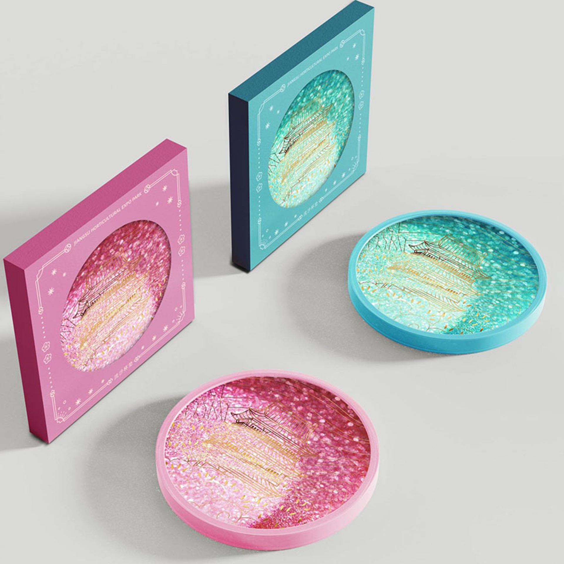 流沙杯墊系列:雨京園·流沙杯墊系列以商京園的地標(biāo)建筑景陽樓為設(shè)計靈感,巧妙的將建筑元素做了畫中畫的處理,表達(dá)了美好祝福。