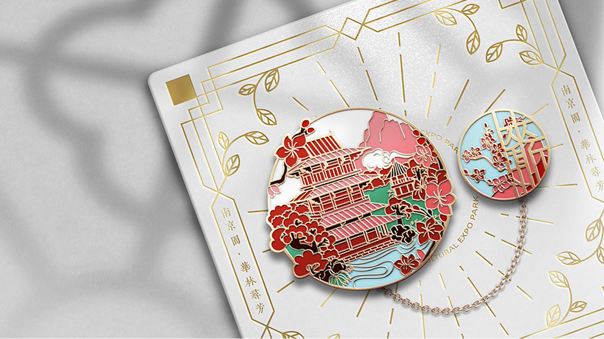 蘇韻薈谷·文創(chuàng)徽章:蘇韻薈谷徽章系列以江蘇省十三市經(jīng)典園林建筑為靈感,分別融入各地代表美好寓意的特色方言,從傳統(tǒng)園林窗花切入,運用視覺立體化手法,形成具有地方特色的徽章視覺體系。