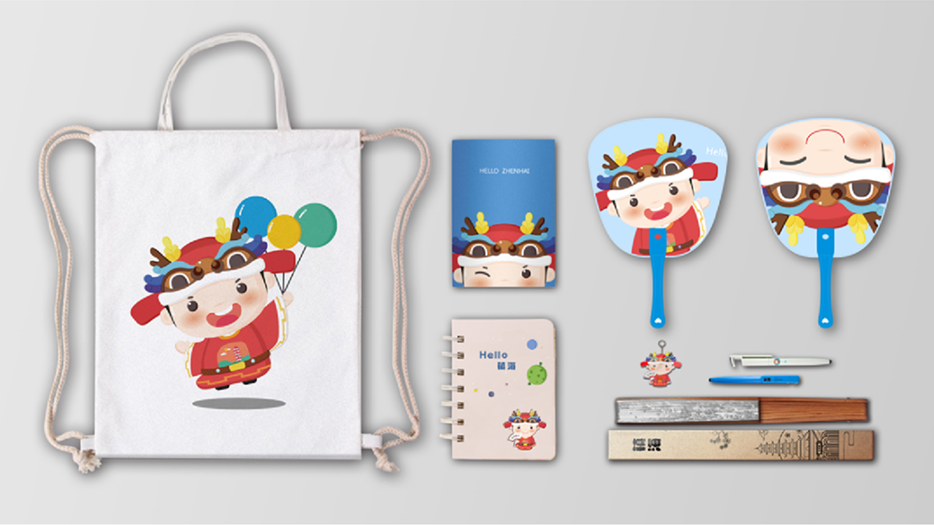 木馬在開展鎮(zhèn)海吉祥物形象和衍生品設計之前,對鎮(zhèn)海進行了詳細的了解,整合了鎮(zhèn)海的地理環(huán)境、文化象征和風俗人情,重點提取了招寶山作為當?shù)厝宋脑氐脑O計點,配合當?shù)氐纳鐣詈腿宋墓?jié)慶,設計出鎮(zhèn)海吉祥物以及衍生品。鎮(zhèn)海吉祥物和衍生品以獨特的本土特色,成為鎮(zhèn)海的旅游形象象征,吉祥物和衍生品的外觀引導用戶在使用情境中感受設計所營造的屬于鎮(zhèn)海的異域風情。