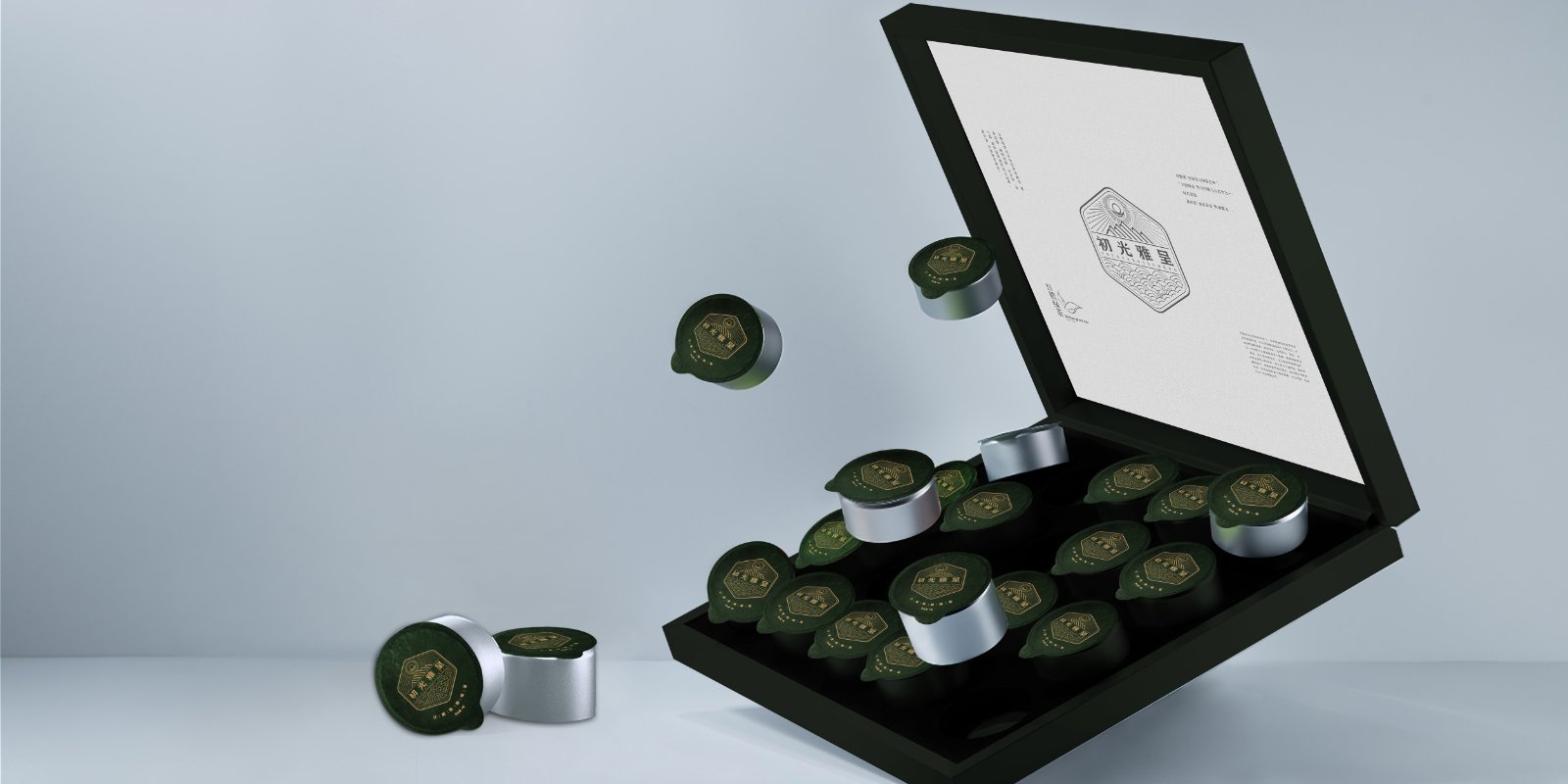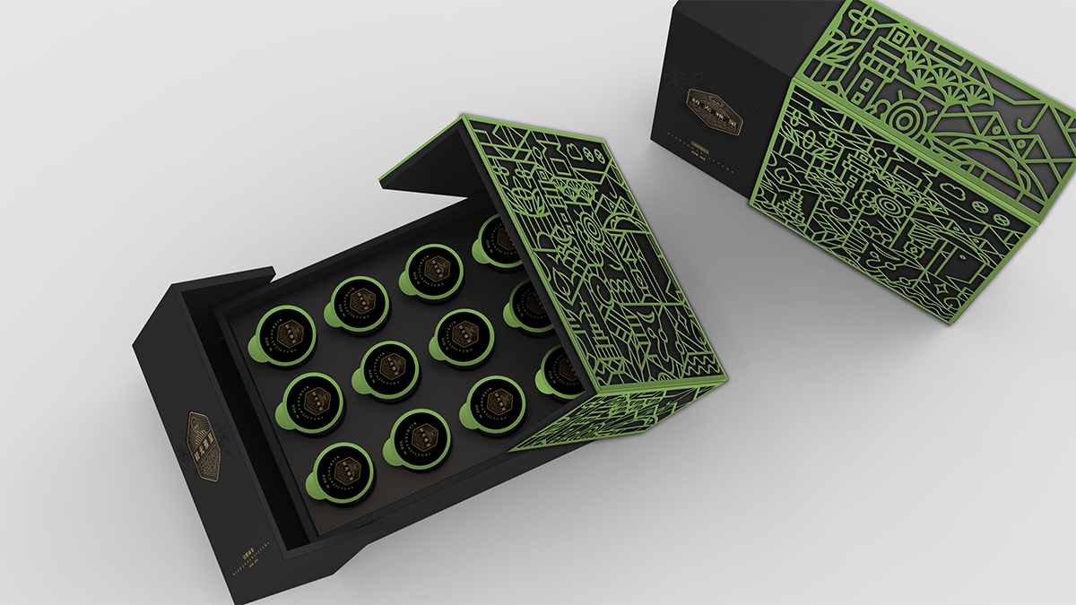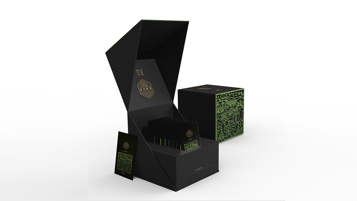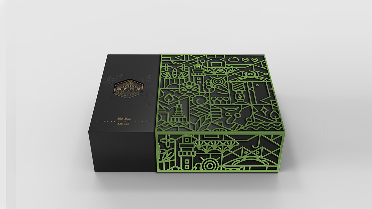 基于品牌風(fēng)格定位,我們以體現(xiàn)產(chǎn)品的高端、高品質(zhì)、文化屬性以及歷史厚重感為設(shè)計的主要方向。我們對于包裝應(yīng)用:色彩是保持品牌可視化的強大工具,在包裝用色上,我們主要以太陽文化、茶葉為原型,提取其中顏色,將黑、金、綠相結(jié)合,深沉、古樸、高雅,賦予品牌高端感,具有強烈的視覺沖擊力。