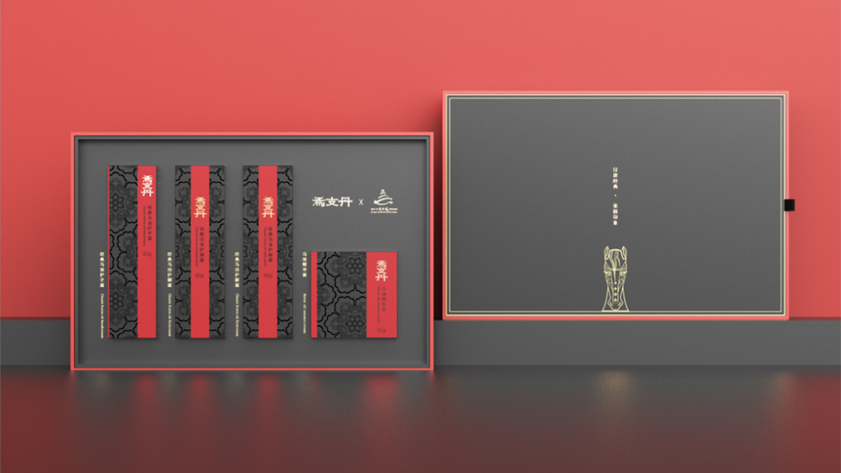 ? ? ? ? 位于張掖焉支山下的山丹軍馬場(chǎng)具有兩千年歷史,由西漢驃騎將軍霍去病始創(chuàng),是亞洲最大軍馬場(chǎng),馬成為張掖最具代表的特征之一。該禮盒以“漢唐經(jīng)典,張掖印象”為主題,采用具有漢文化視覺(jué)代表的漆器紅黑配色,禮盒表面采用暗紋壓印,增加禮盒層次,內(nèi)頁(yè)搭配燙金馬頭圖案,展示張掖經(jīng)典印象。