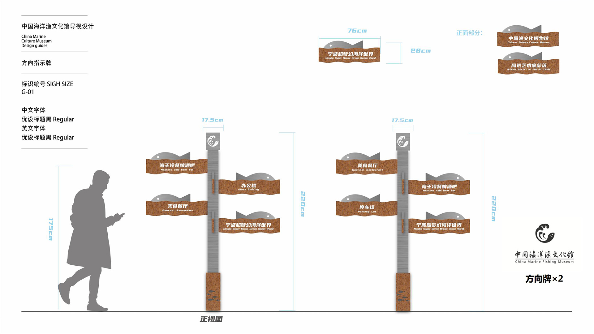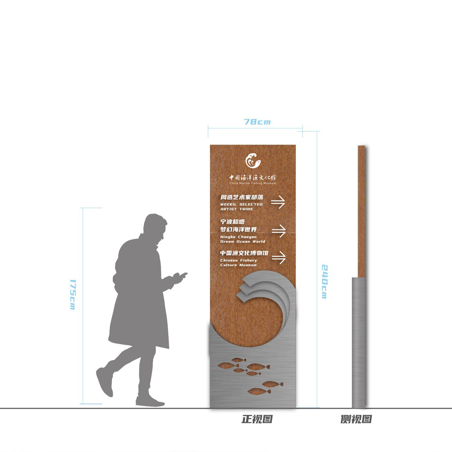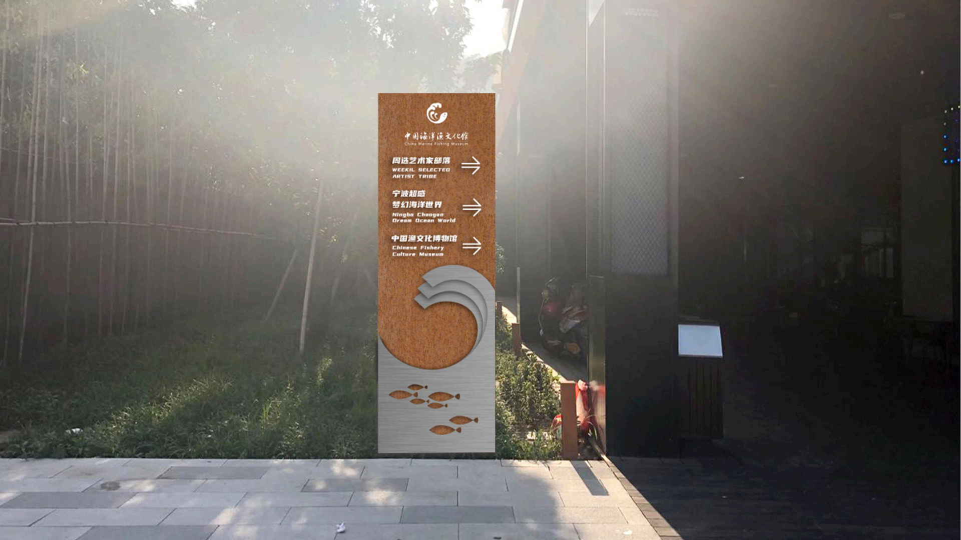 該館以歷史為脈絡,部分還原了漁村舊貌,運用AR、裸眼3D等技術(shù),展現(xiàn)了象山以海為生、與海共榮的海洋文化發(fā)展歷程和我國海洋漁文化的多樣性和豐富性。同時,中國海洋漁文化館充分利用舊廠區(qū)空間,建設了城市會客廳、文創(chuàng)非遺孵化區(qū)等項目。我們團隊將導視設計以漁文化為切入點進行。
