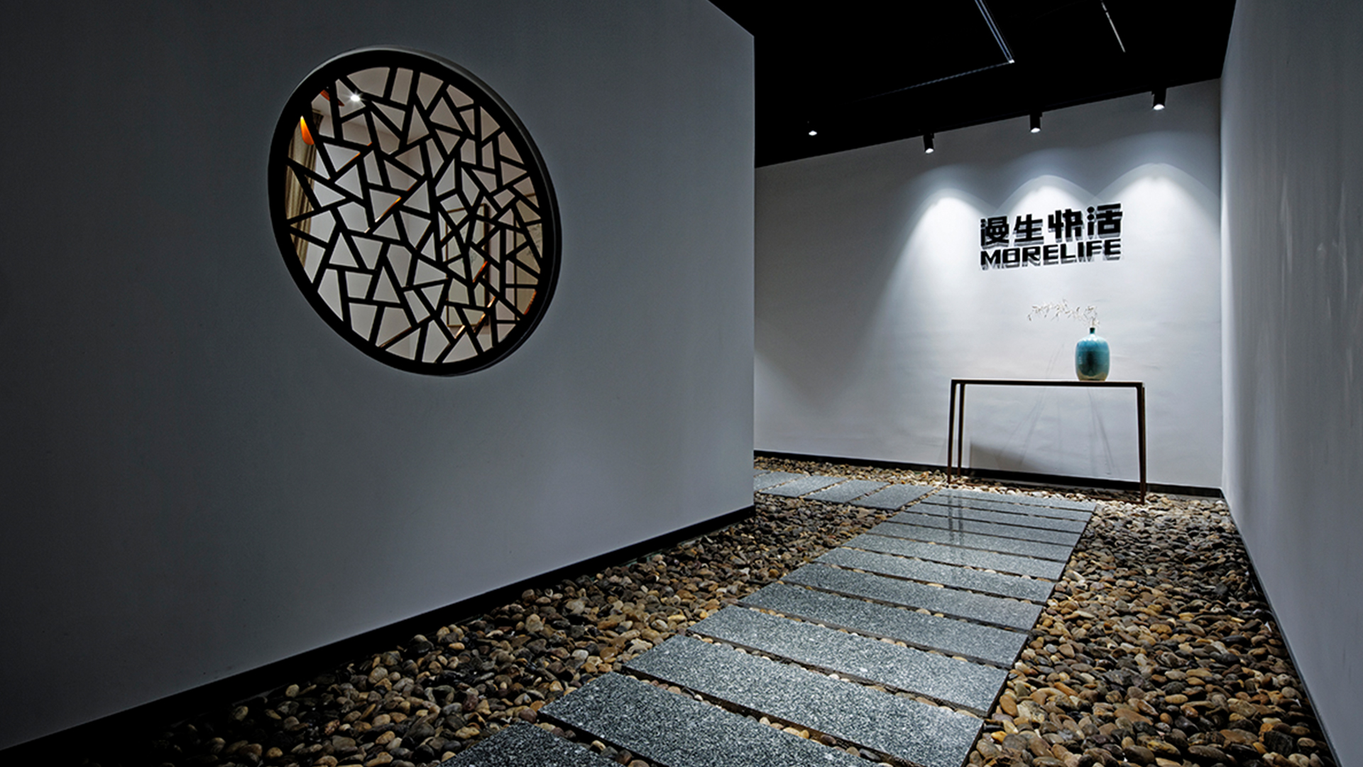不爭論,不辯解,不過分堅持,讓本性自然釋放,也許有一天我們還會走向自己的反面。如果說平衡是世界的本來面貌,那么節(jié)制就是自我的修行。在欲望似乎沒有盡頭的今天,節(jié)制便顯得彌足珍貴。此項目運中江南園林中曲徑通幽之形,設計在方寸之間強化了藝術瓷器的雅致特別,進入后為一個集展示、零售、體驗及咖啡的綜合空間。一扇木門、一個櫥窗、一個景窗、一個圓形門廊,以多樣含蓄的方式與藝術對話。