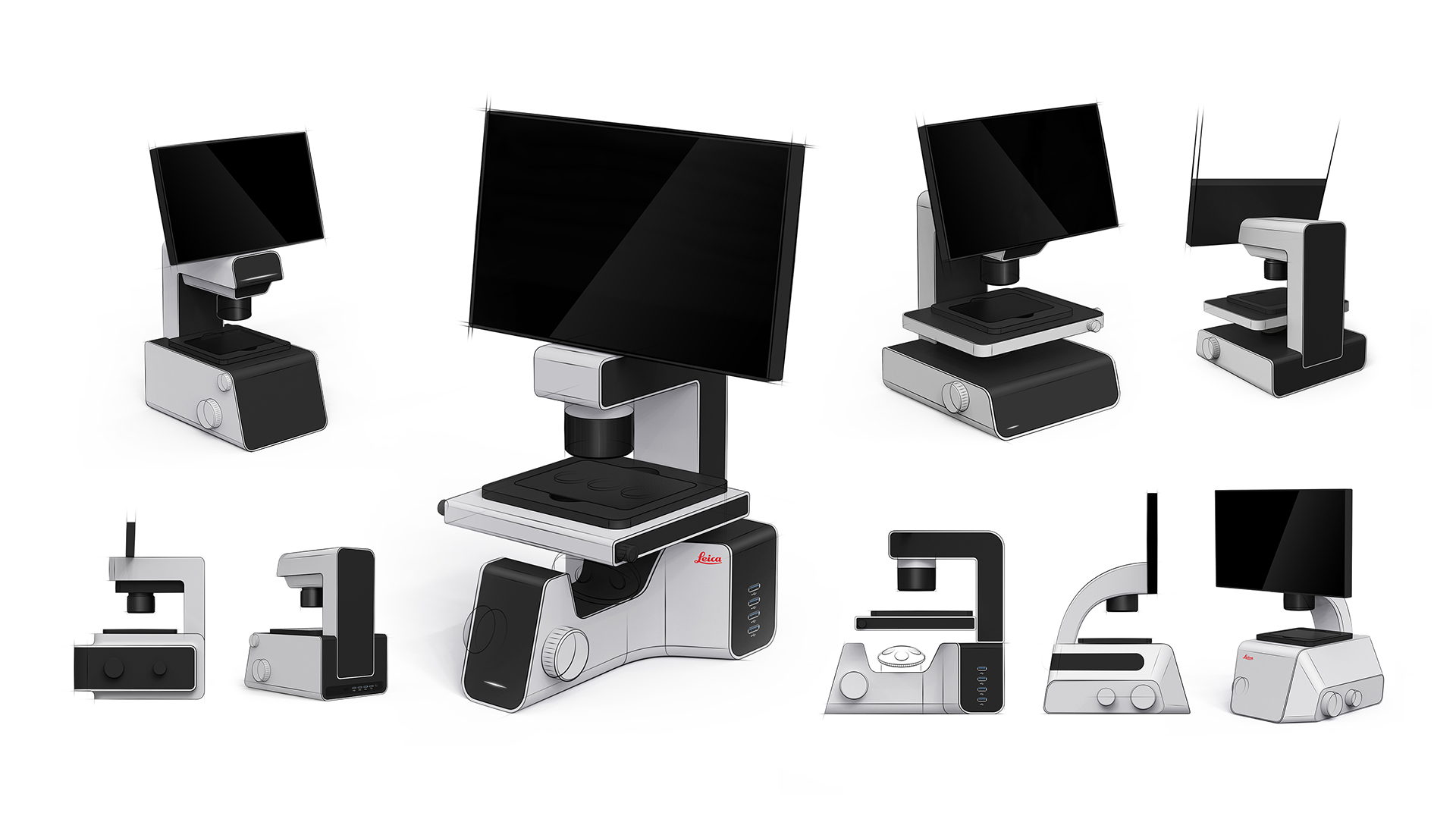 疫情的肆虐促使全球生物醫(yī)療領(lǐng)域高速發(fā)展,對微觀世界研究和探索的需求日益增強。在臨床和生物監(jiān)測方面,徠卡有其獨特的檢測流程和設(shè)備。徠卡SMILE通用顯微鏡相較于其他光學(xué)顯微鏡,最大的優(yōu)勢是設(shè)計有可旋轉(zhuǎn)的高清顯示屏幕,方便實驗者在使用時詳細的觀察數(shù)據(jù),并設(shè)計有一鍵拍照按鈕,隨時將需要的數(shù)據(jù)保存下來。整個產(chǎn)品的設(shè)計風(fēng)格采用了徠卡全新的品牌形象定義,同時設(shè)計師還為通用顯微鏡系統(tǒng)設(shè)計了統(tǒng)一的品牌形象標識。